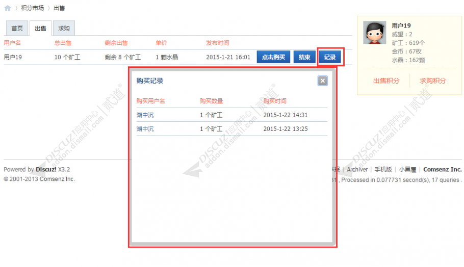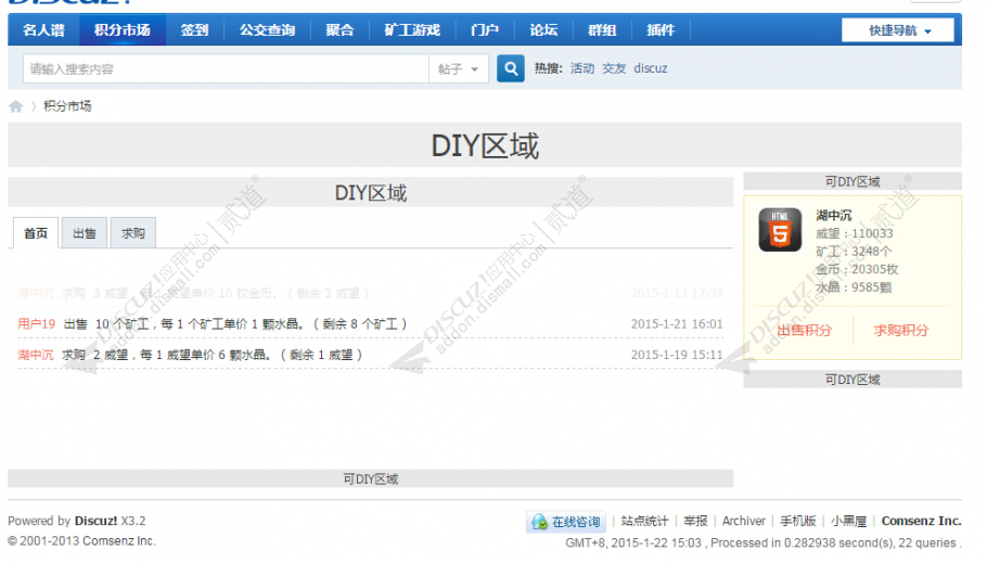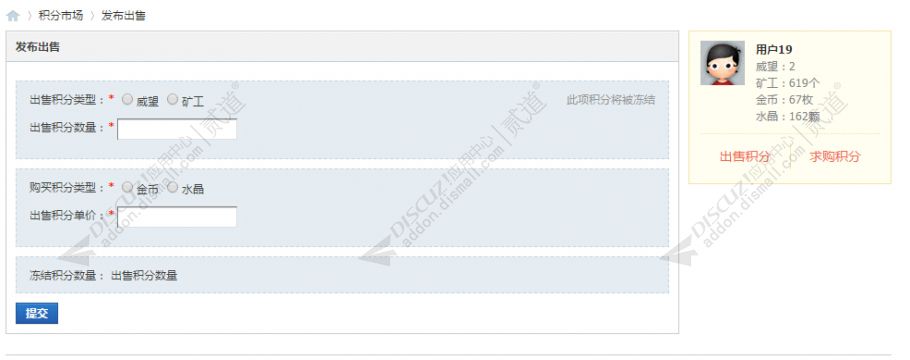 ![]() 积分交易市场 Discuz插件 第三方开发者 |