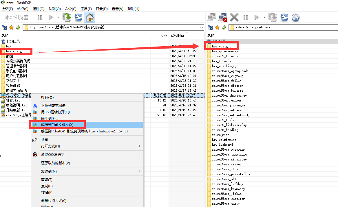 第一步:解压文件,把hzw_chatgpt文件夹上传到addons目录下面